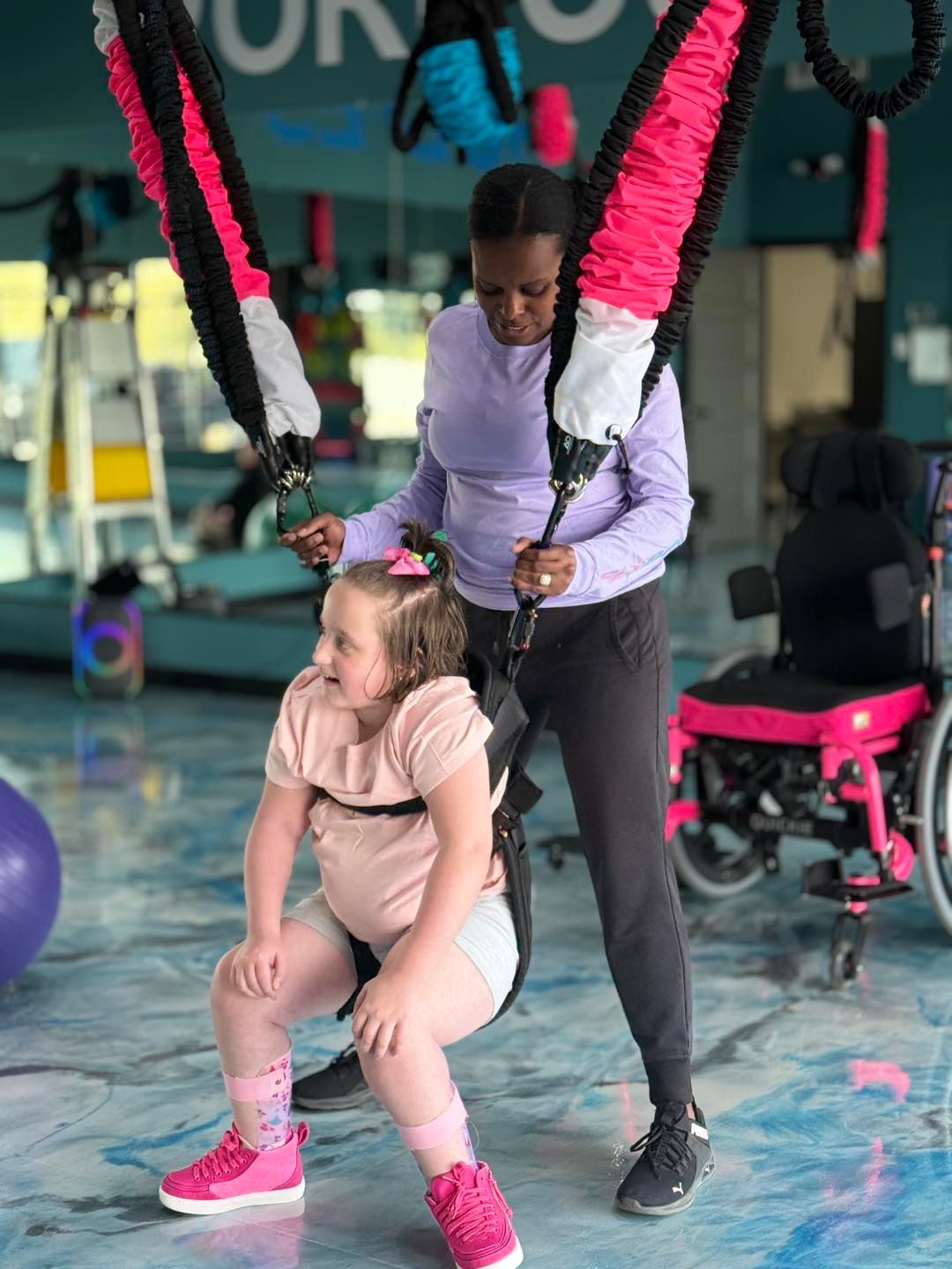 Bungee fitness is an excellent choice for individuals recovering from or living with physical challenges such as stroke, spinal cord injuries, spina bifida, and other mobility-limiting conditions. The bungee system reduces joint impact while providing gentle resistance, making movement safer, more supportive, and empowering.
